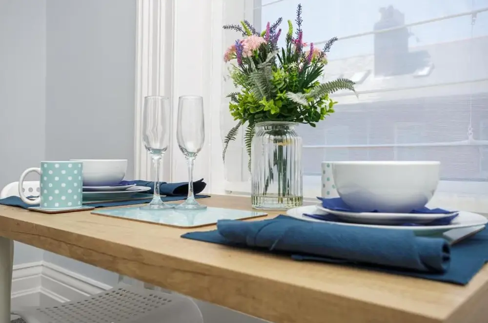 All plates, cutlery, glasses, and other tableware sanitized
